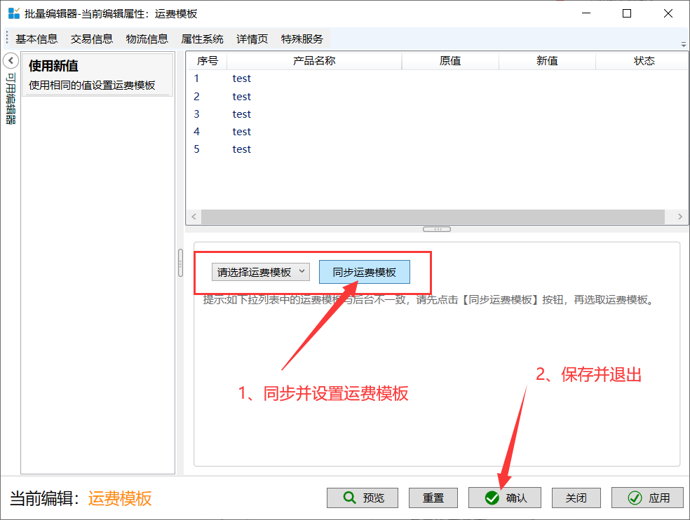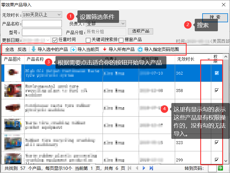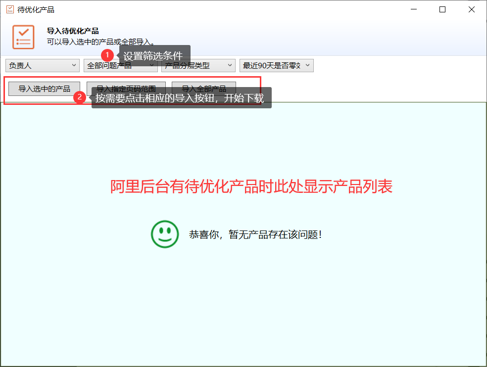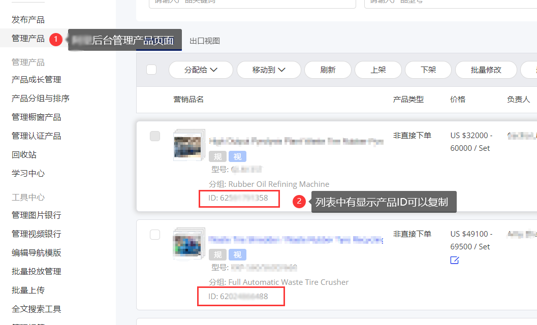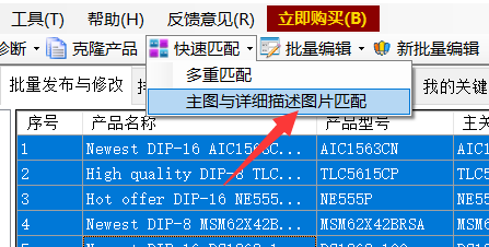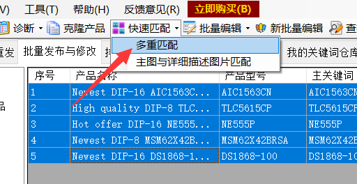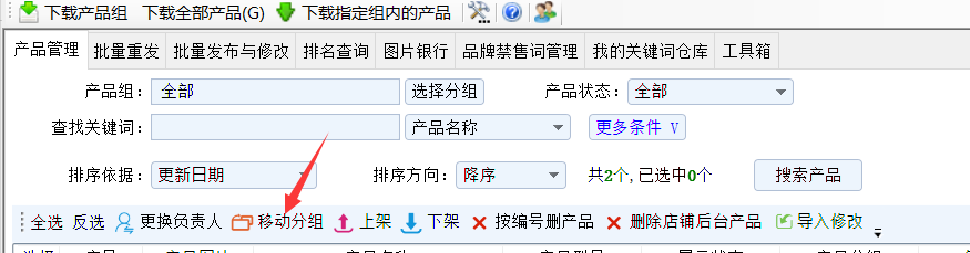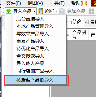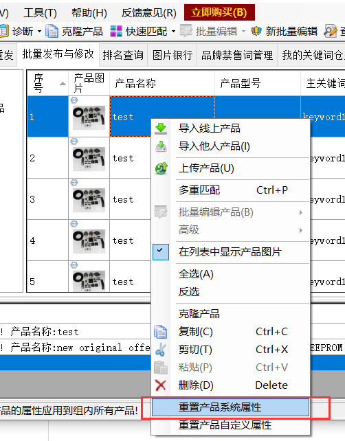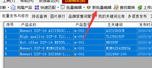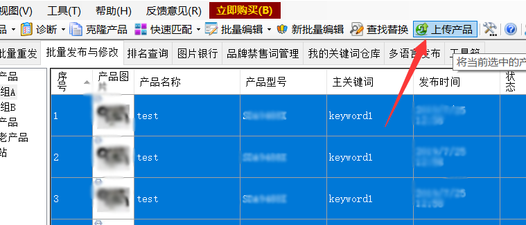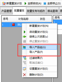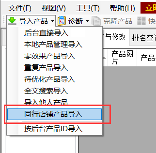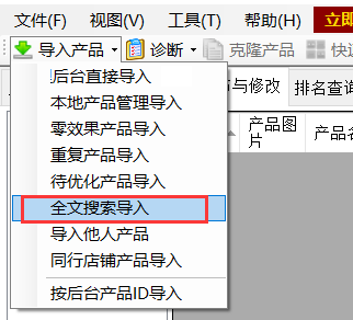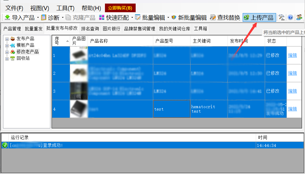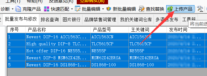 第一步:界面切换到批量发布与修改,选中模板产品点击 导入产品。