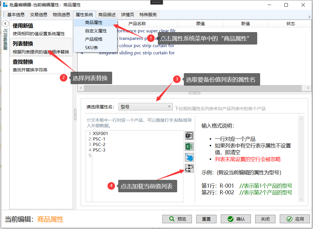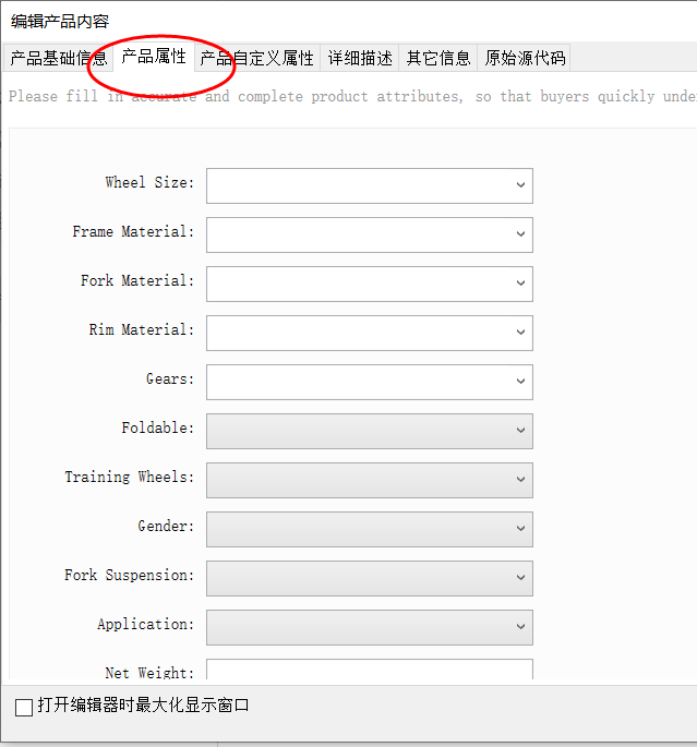 [danger]类目属性里面目前不支持使用占位符,可使用对应的属性编辑器批量插入需要的内容。