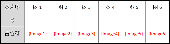 [danger]注:主图的占位符是固定的,六张图片的占位符如下表所示: