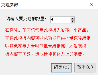 点击工具栏上的克隆产品,输入克隆数量 4。