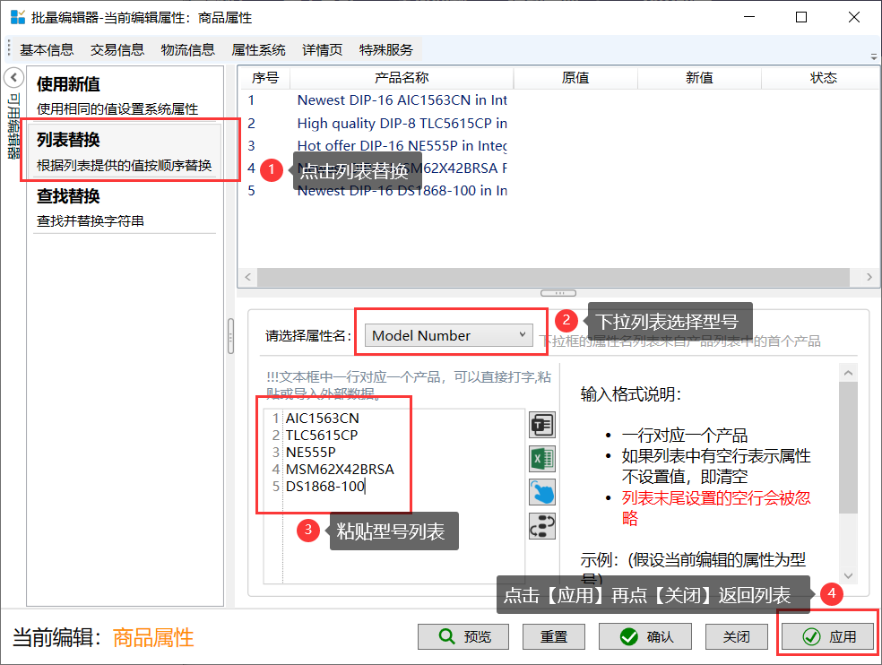 $title$以及$model$,现在我们使用多重匹配这个功能把$title$和$model$分别替换为各自的标题和型号。