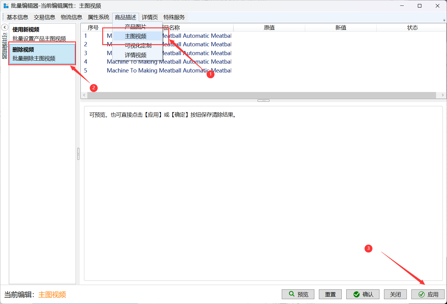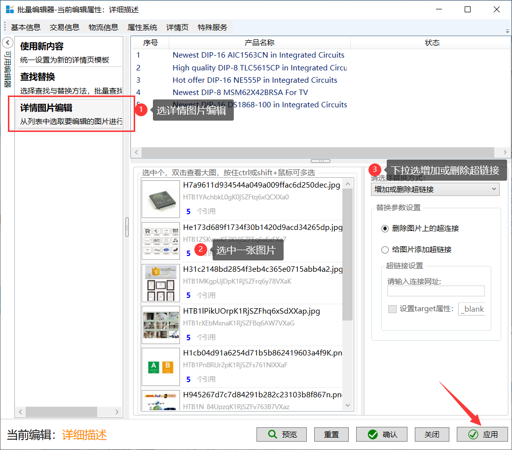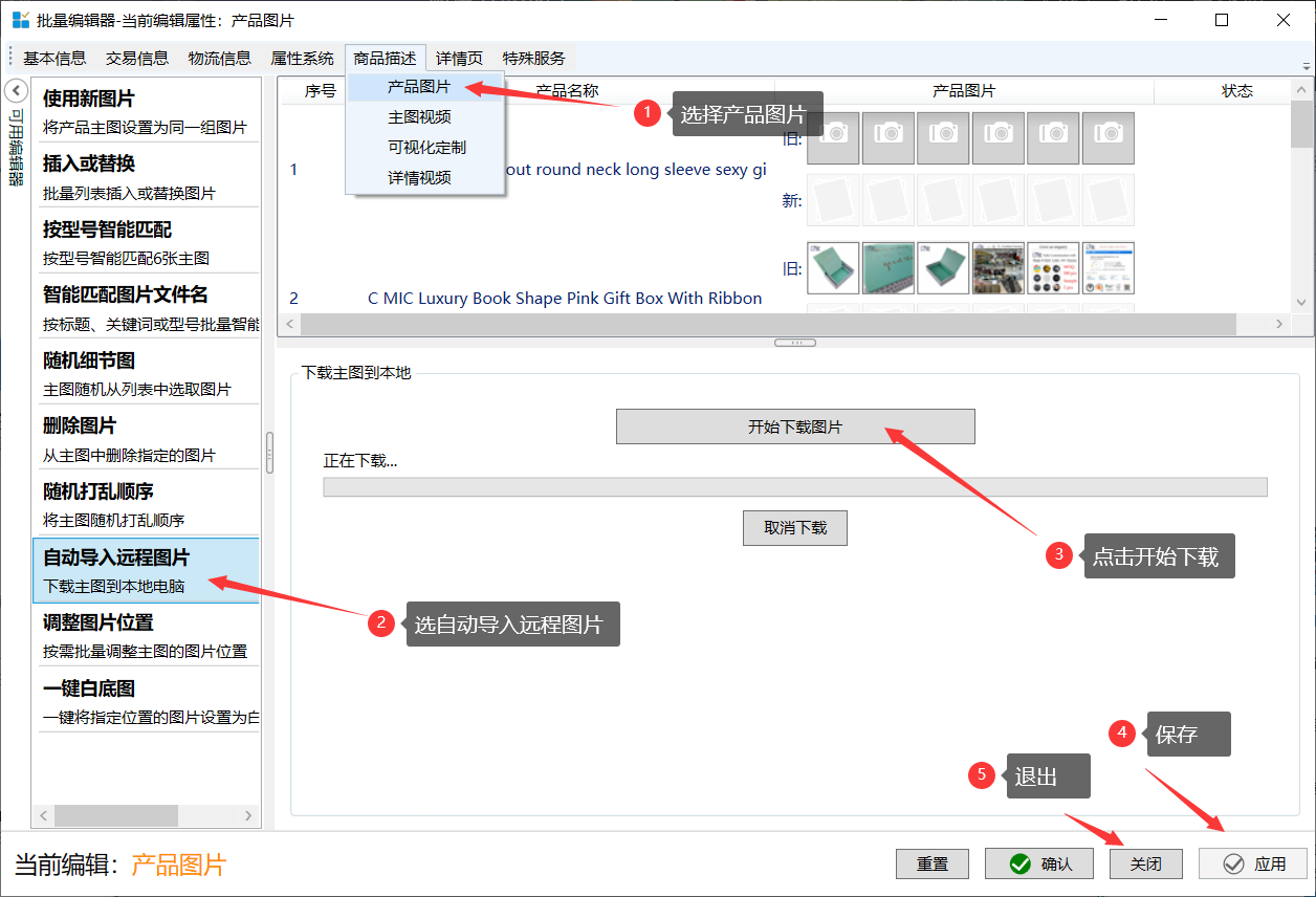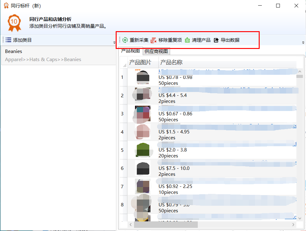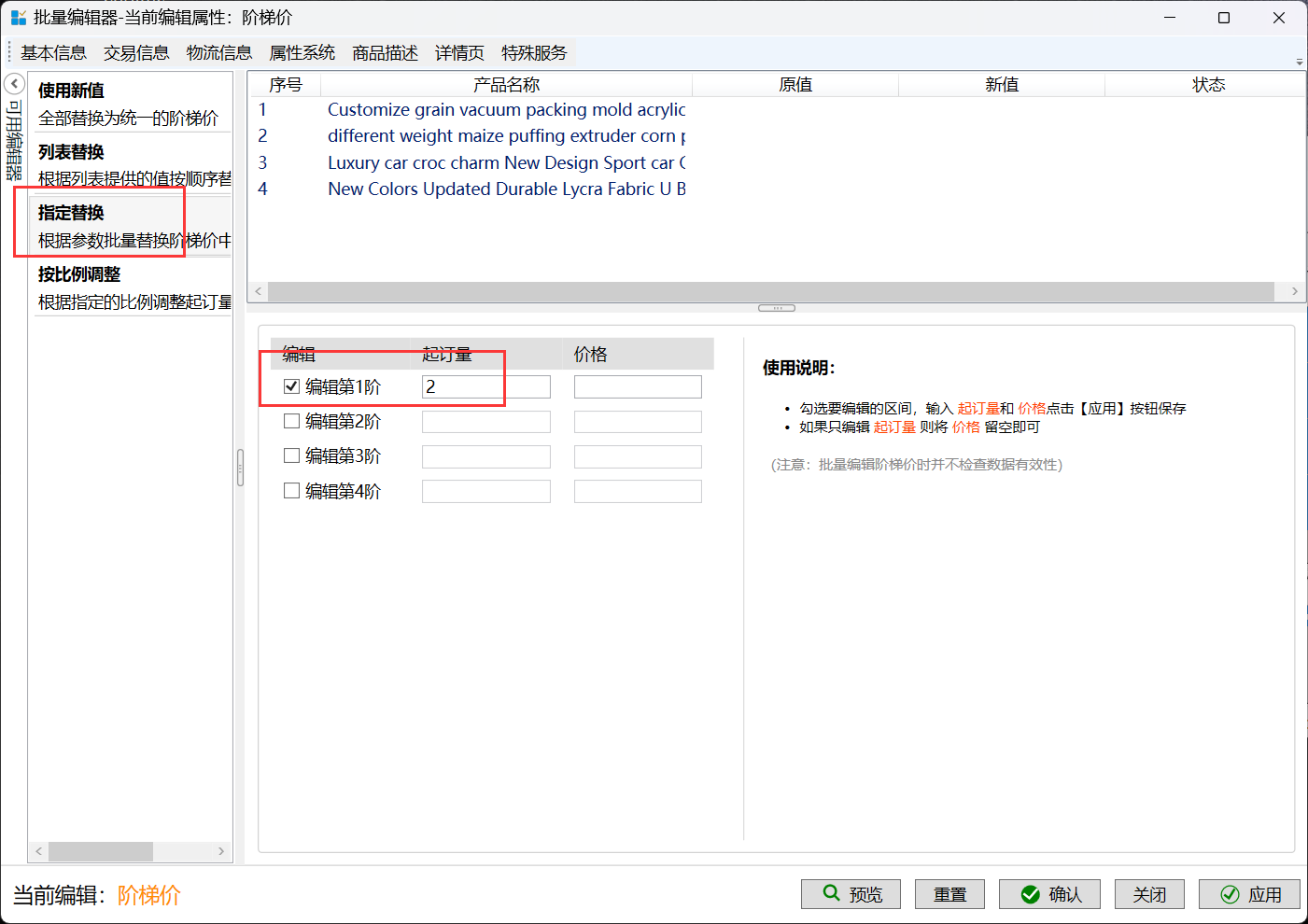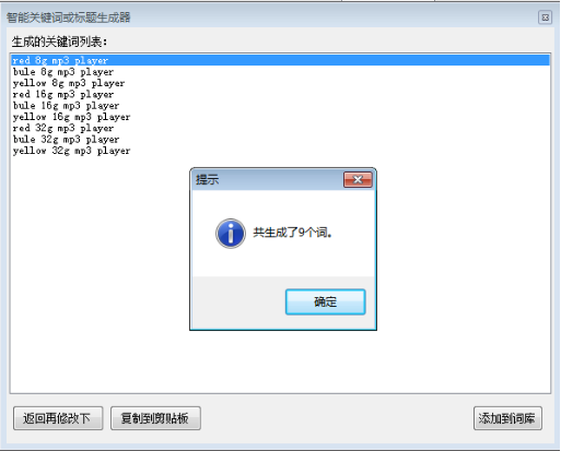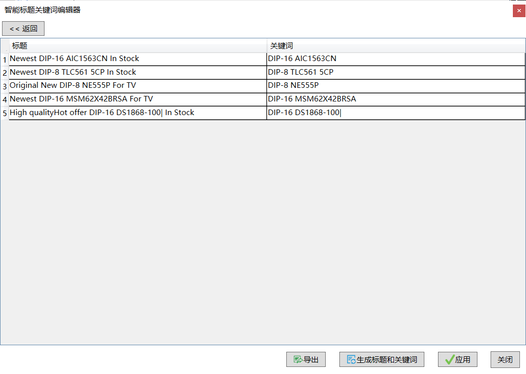 得到满意的标题关键词后,点击应用按钮可以批量插入到前面选中的5个产品中,修改对应的标题和关键词。也可以点击导出按钮把结果另存。