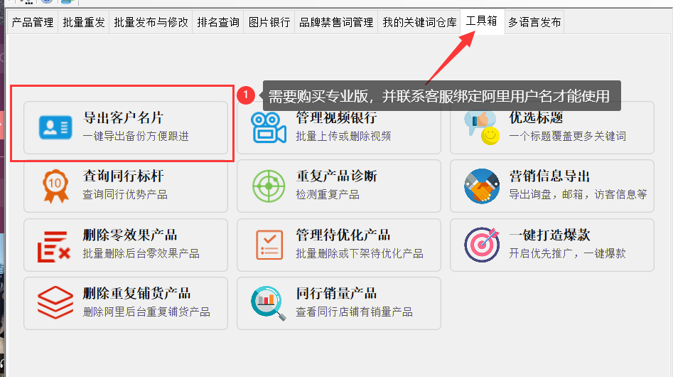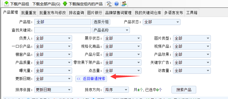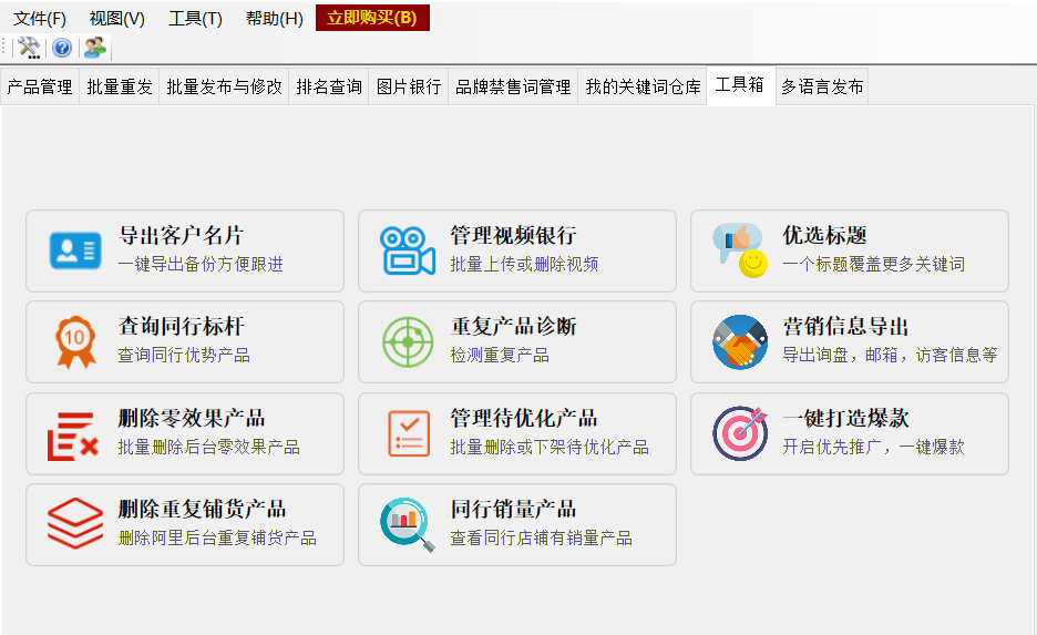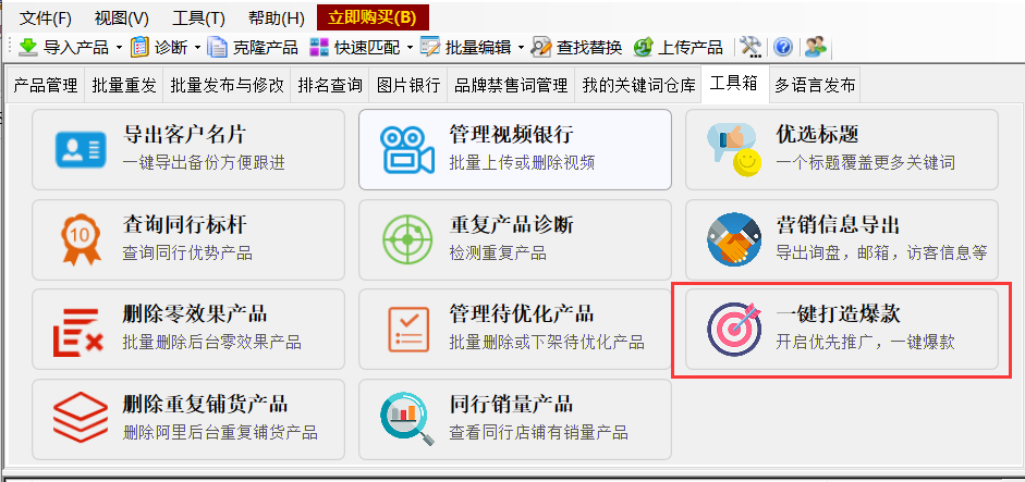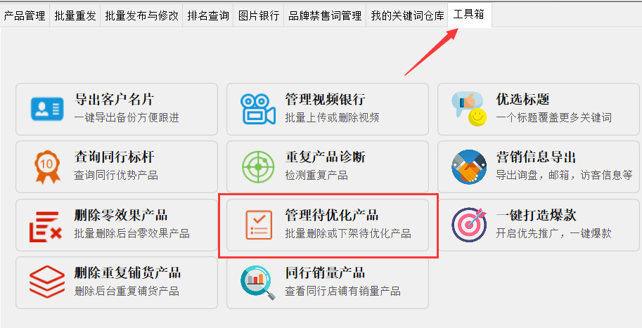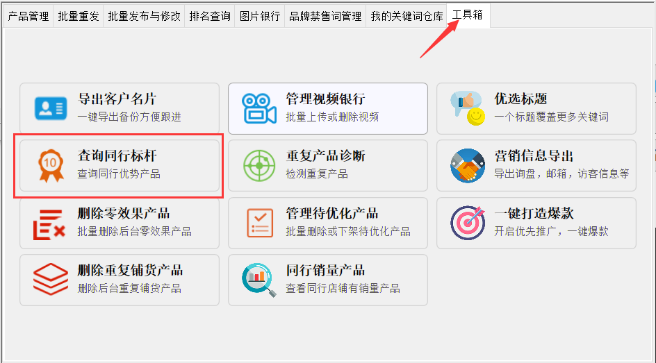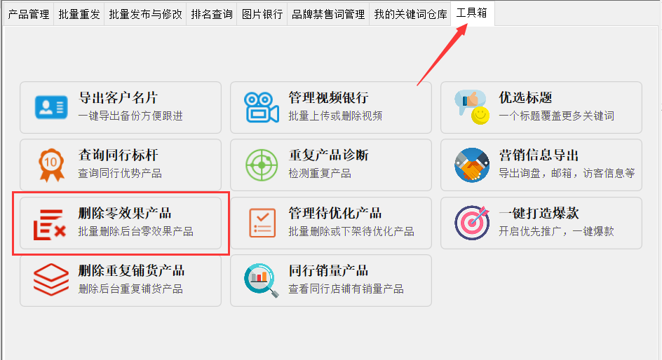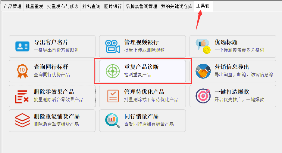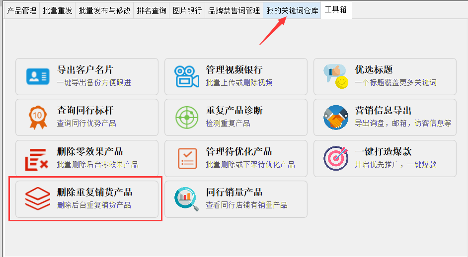 一、切换到 工具箱面板,选择批量删除重复铺货产品
