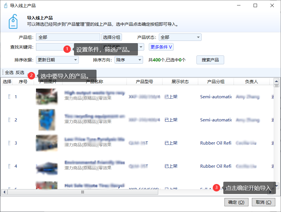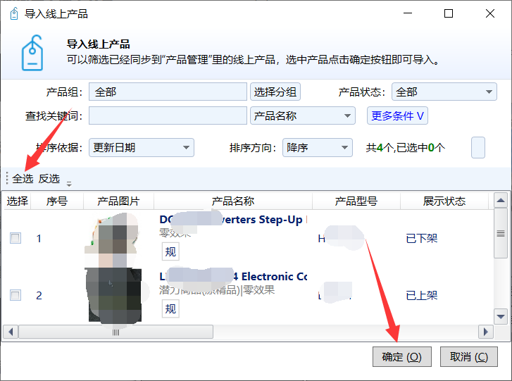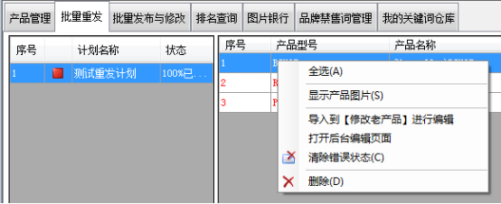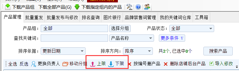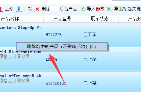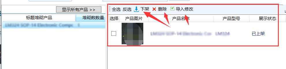 五、处理重复产品,可对产品进行下架、删除或导入修改