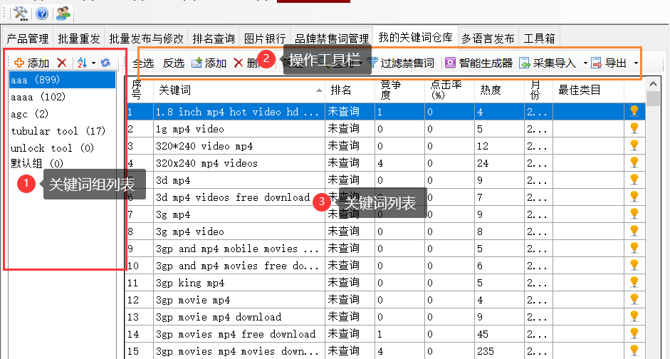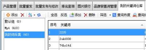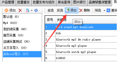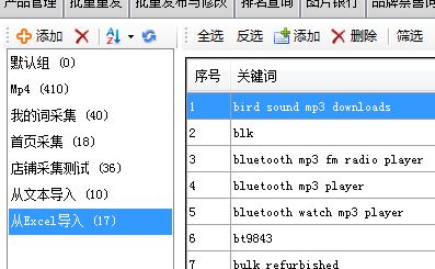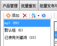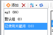 如已使用关键词组中有10个已经用过的关键词,再新采集来的词放在mp3这个组里,从mp3组中移除已使用关键词的步骤如下: