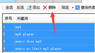 - 选中要删除的关键词组,点击工具栏上的删除图标