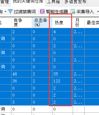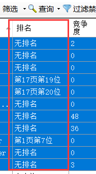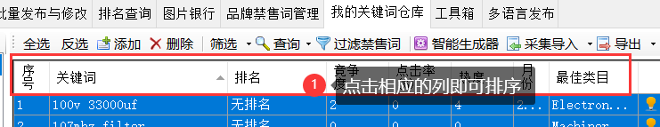 点击列头即可进行排序,默认以关键词名称升序排列。
