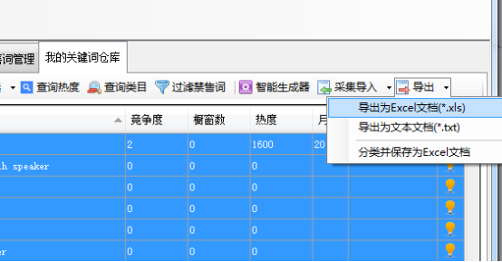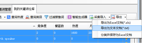选中要导出的关键词点击导出,然后选择导出为文本文档即可。