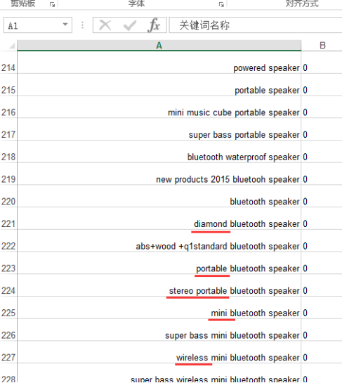 [info]导出后样式下图所示,可以直观看到关键词组合。