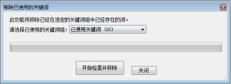 三、点击开始检查并移除,完成后点击关闭返回主界面,mp3组中的关键词如果已经在已使用关键词组中存在就会被删除