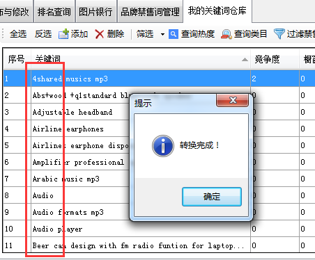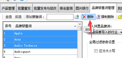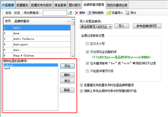 二、软件会自动按照品牌禁售词管理中设置的参数进行过滤