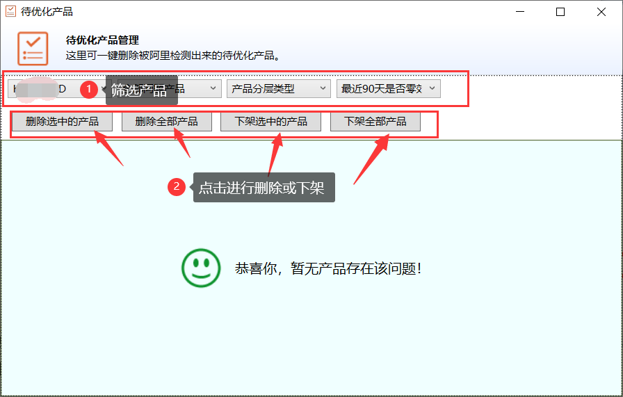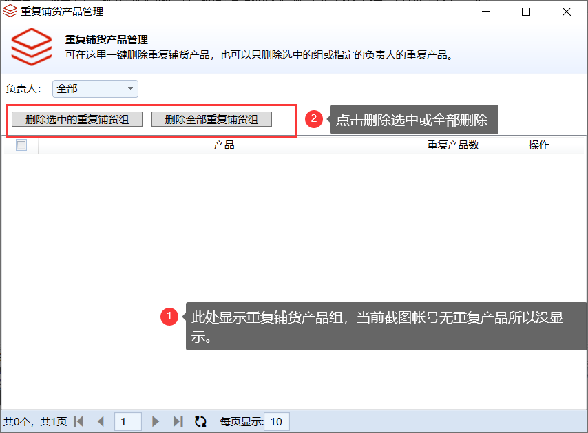 二、点击删除选中的重复铺货组或删除全部重复铺货组