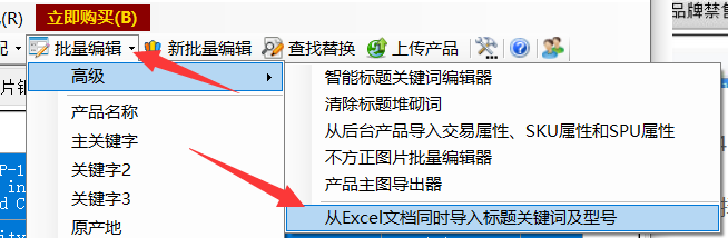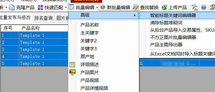 依次点击批量编辑>高级>智能标题关键词编辑器。