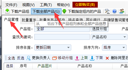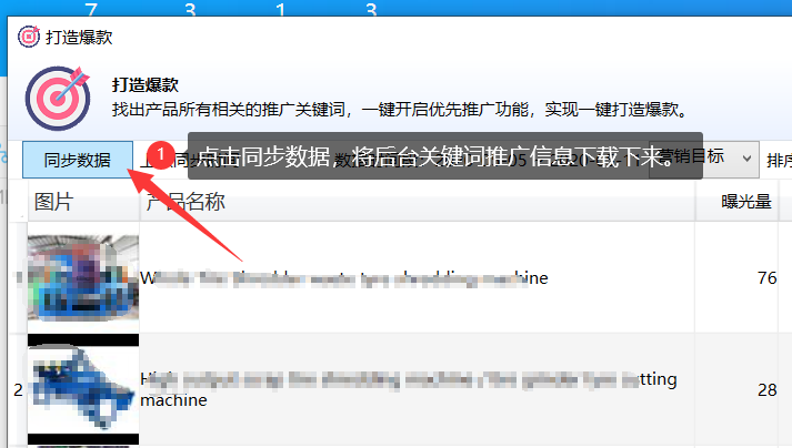 第二步:点击同步数据把产品推广信息下载到软件里来。