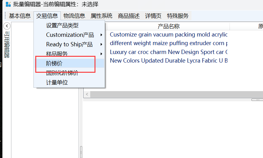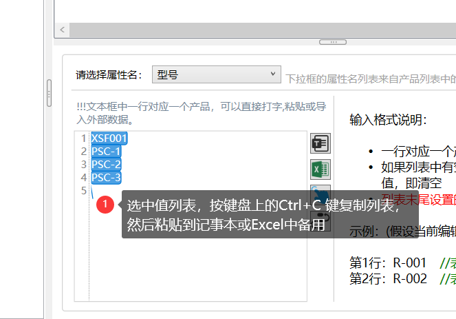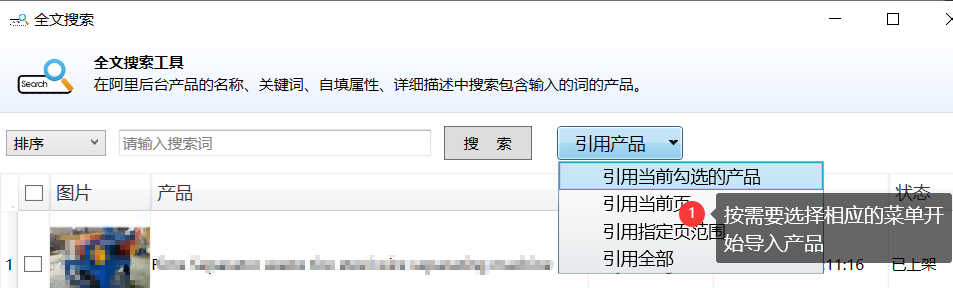 在产品列表上点击弹出右键菜单后选择全选,或使用快捷键Ctrl+A,又或按住鼠标左键往下拉到底。
