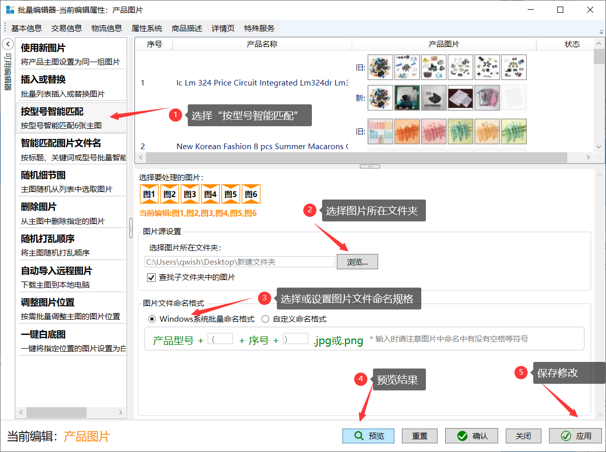 [info]本例使用智能匹配图片名称的方式编辑主图,图片命名规则如下