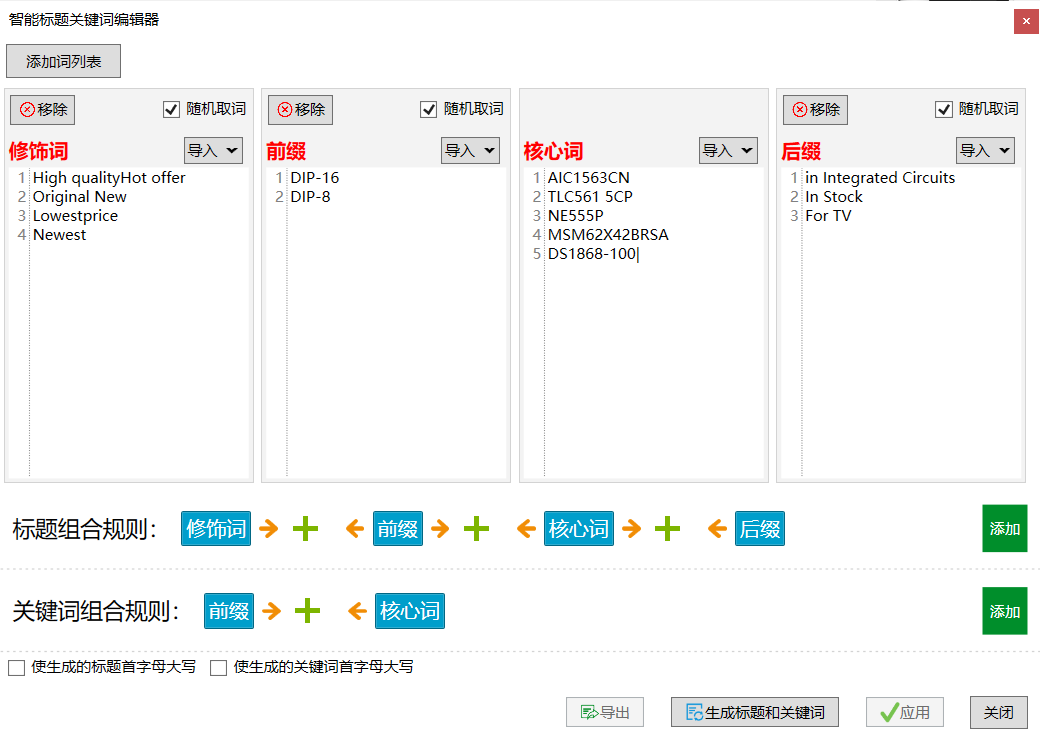 根据需要勾选这2个选项,使生成的标题或关键词第一个字母自动转成大写。
