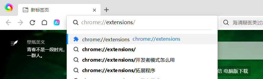 打开360极速浏览器后,在网址栏输入chrome://extensions,然后按下回车键。