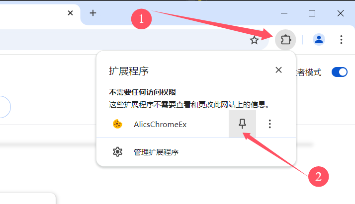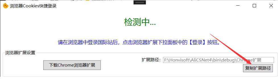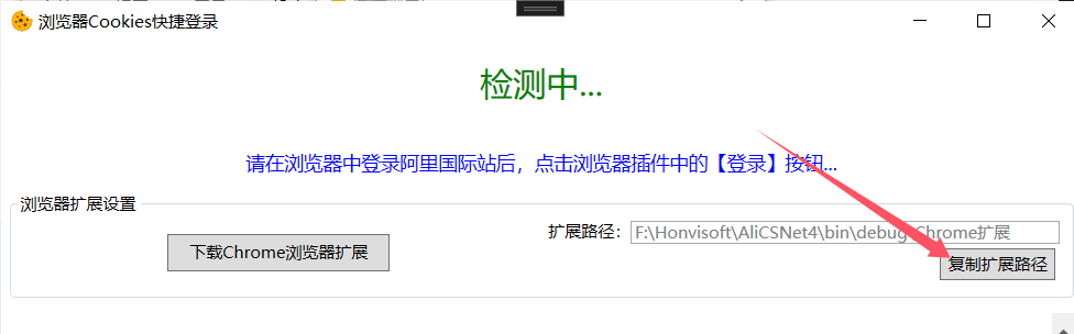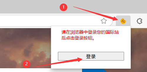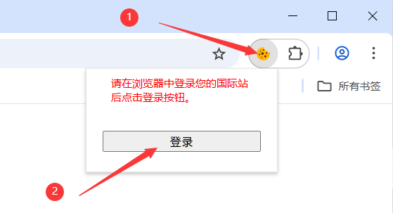 安装完成后点击浏览器上的扩展图标,在下拉框中把刚刚加载的扩展固定到工具栏上显示。登录国际站后台就可以点击扩展图标,然后从下拉面板中点击登录自动获取cookie进入软件。