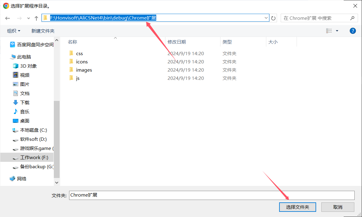 点击加载已解压的扩展程序按钮,回到从Cookie登录界面点击复制扩展路径,然后到浏览器界面将复制的路径粘贴到对话框的路径框中,然后按下回车键,最后点击选择文件夹完成。