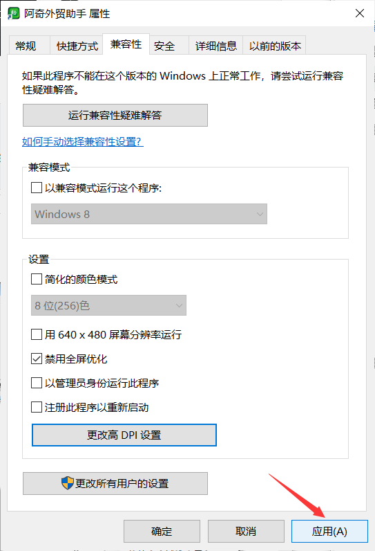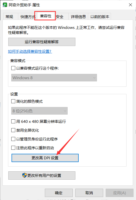 在桌面阿奇外贸助手图标上点右键,打开【属性】对话框: