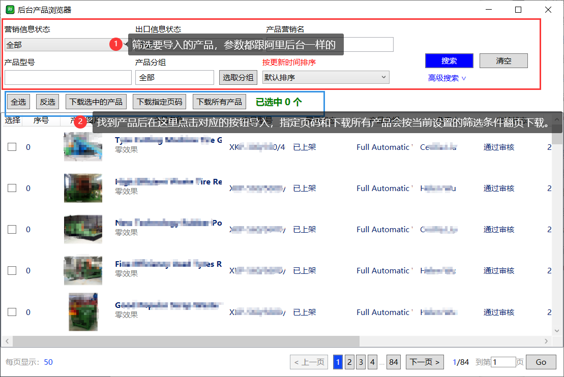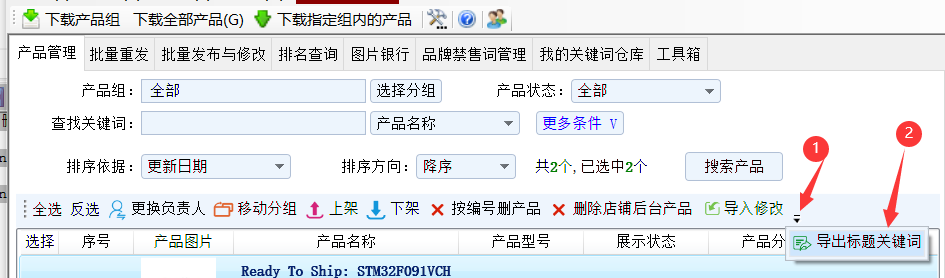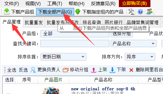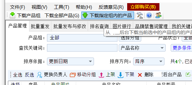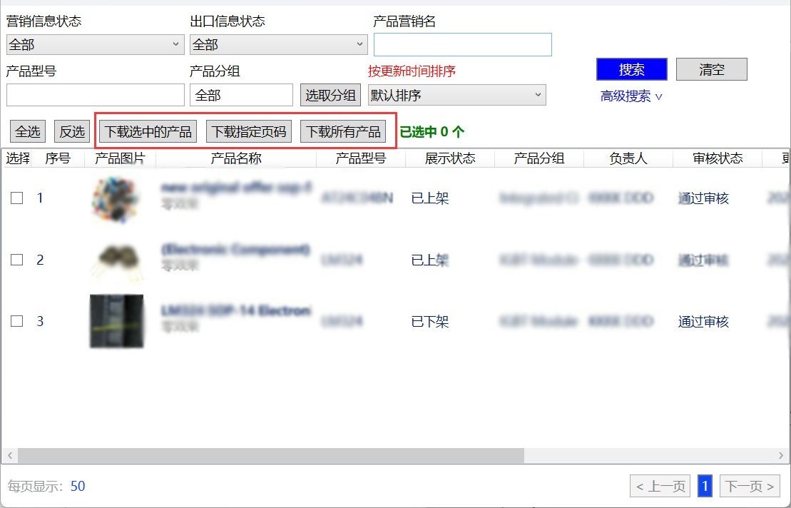 第三步:选中要作为模板编辑的产品,点击 下载选中的的产品。