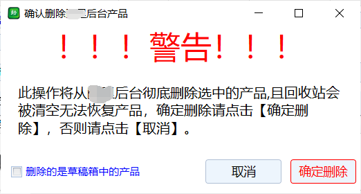 [danger] 注意!!! 产品被删除操作后无法恢复,一定要慎重!再慎重!