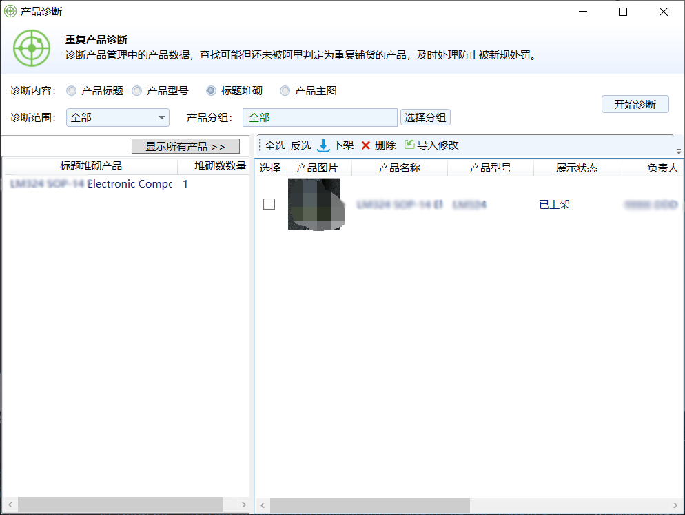 产品管理中的产品是否有重复铺货的可能性,目前检查标题、型号、标题堆砌和主图。