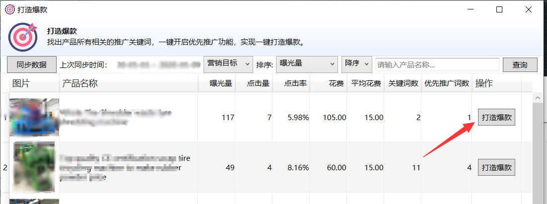 第三步:在要打造成爆款的单品后面点击打造爆款。