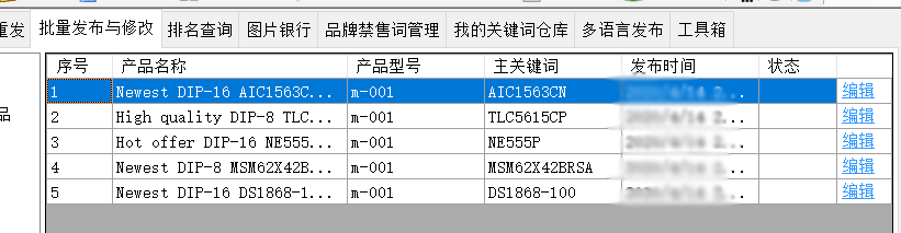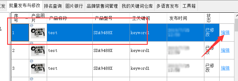 第二步:选择一个已经发布的线上产品做为基础来编辑,这个产品最好跟你要批量发布的产品比较相似,特别是类目最好是一样的。